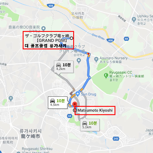 골프장 주변드럭스토어 마츠모토키요시에서 차로 약 10분 소요 |