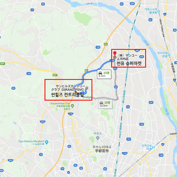 골프장 주변썬유 슈퍼마켓에서 차로 약 15분 소요 |