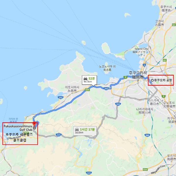 공항 기준후쿠오카 공항에서 차로 약 52분 소요 |