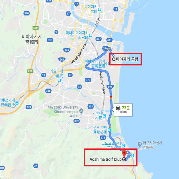 엑세스 공항 기준 : 미야자키공항에서 차로 약 25분 소요