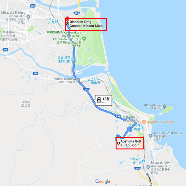 [아코디아] 아오시마 골프클럽 미야자키공항에서 차로 약 25분 소요 [아코디아] 아오시마 골프클럽  드럭스토어 코스모스 키바나점에서 차로 약 13분 소요