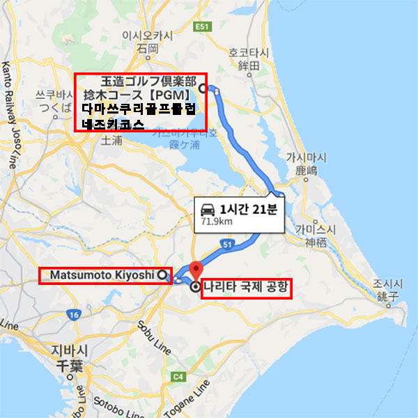 [PGM] 다마쓰쿠리골프클럽 네지키코스 나리타 국제공항에서 차로 약 1시간 9분 소요 [PGM] 다마쓰쿠리골프클럽 네지키코스 드럭스토어 마츠모토키요시까지 차로 약 1시간 14분 소요