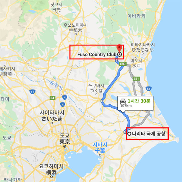 공항 기준나리타 국제공항에서 차로 약 1시간 30분 소요 |