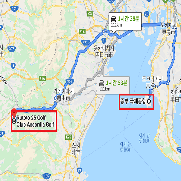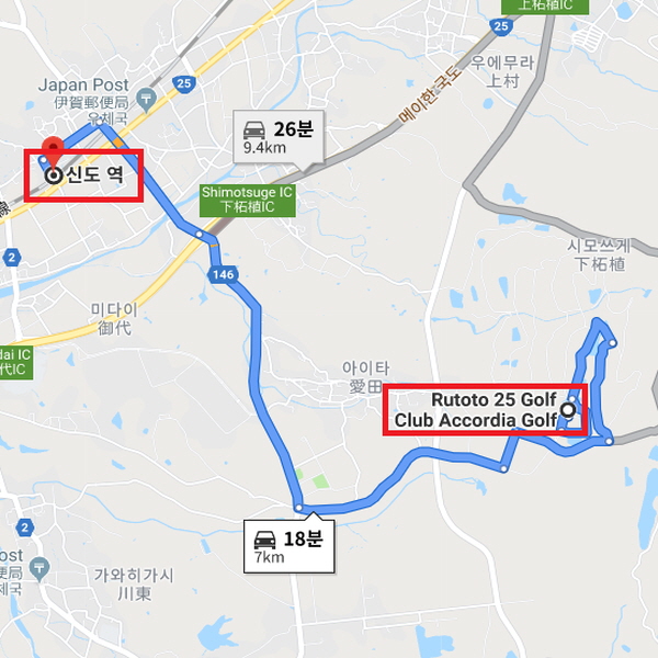 [아코디아] 루트25 골프클럽 중부 국제공항에서 차로 약 1시간 40분 소요 [아코디아] 루트25 골프클럽 JR 간사이 본선 신도역에서 차로 약 20분 소요