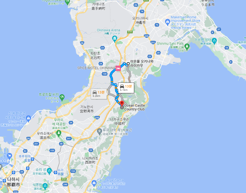 [아코디아] 오션캐슬컨트리클럽 나하공항에서 약 40분 [아코디아] 오션캐슬컨트리클럽 오키나와 이온몰 13분