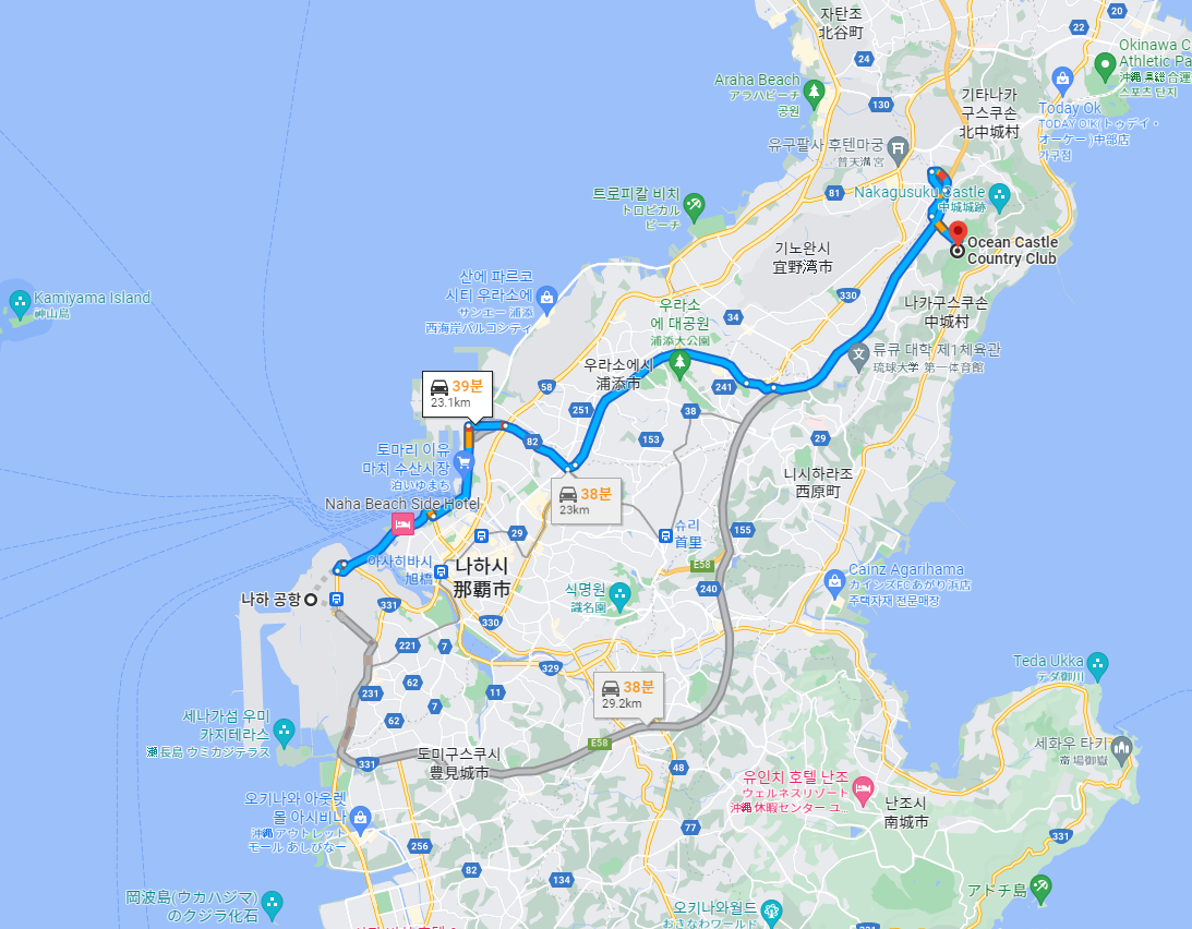 엑세스 공항 기준 : 나하공항에서 약 40분