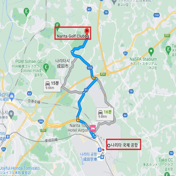 1988년에 개장한 나리타 골프 클럽은 나리타 국제공항에서 차로 약 15분 거리에 위치하여 교통의 접근성이 좋다. 궁극의 클럽 라이프라는 콘셉트처럼 개개인이 만족할 수 있는 환경과 잘 배치된 연못, 풍부한 수목 등 전략성을 높인 코스들과 지리적 조건을 살려 각 홀마다 특징을 가지고 설계되었다. |