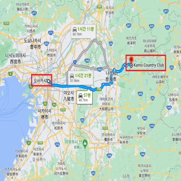 오사카, 나라, 교토 등에서 접근성이 뛰어난 카모 컨트리클럽은 구릉 코스이며 약간의 기복도 있어 정확성을 요구하는 홀이 많다. 히가시 코스(東コース)는 페어웨이가 넓고 거리도 길기 때문에 장타자들에게 유리한 코스이다. 또한 니시 코스(西コース) 거리는 짧지만 연못이나 계곡 등 변화무쌍하고 전략성이 높은 코스들이 이어져 재미있게 즐길 수 있다. |