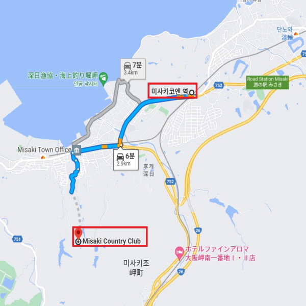 간사이 국제공항에서 차로 약 36분 거리에 위치하여 교통의 접근성이 좋다. 전반적으로 평평한 구릉 코스이며 페어웨이의 폭도 넓고, 완만한 언듈레이션과 계곡 넘기기, 연못 넘기기 등 각 홀마다 특색 있고 재미있는 코스이다. 아웃코스는 특히 플랫하고 거리도 있으며 인코스는 636야드의 호쾌한 18번 홀 등 변화무쌍한 홀이 이어지고 있다. |