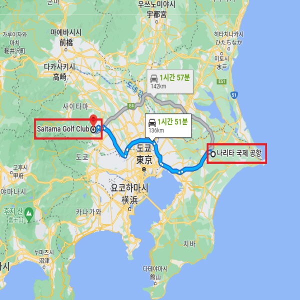[아코디아]사이타마 골프클럽 나리타 공항에서 차로 약 1시간 51분 소요 [아코디아]사이타마 골프클럽 신주쿠 역에서 차로 약 1시간 24분 소요