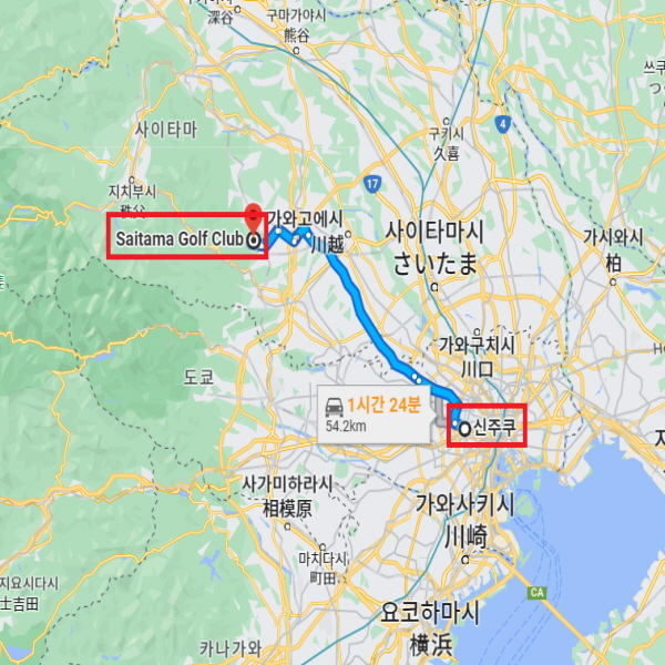 골프장 주변 : 신주쿠 역에서 차로 약 1시간 24분 소요