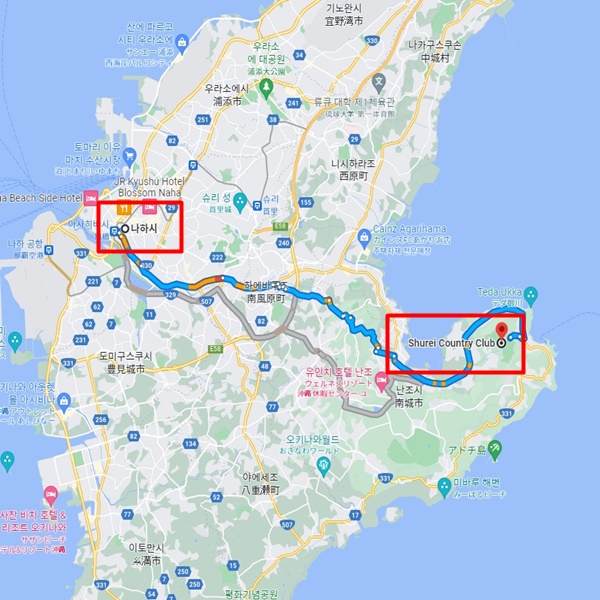 골프장 주변 : 나하시내에서 차로 약 46분