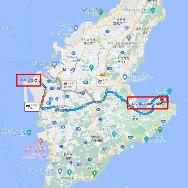 나하공항에서 차로 약 48분