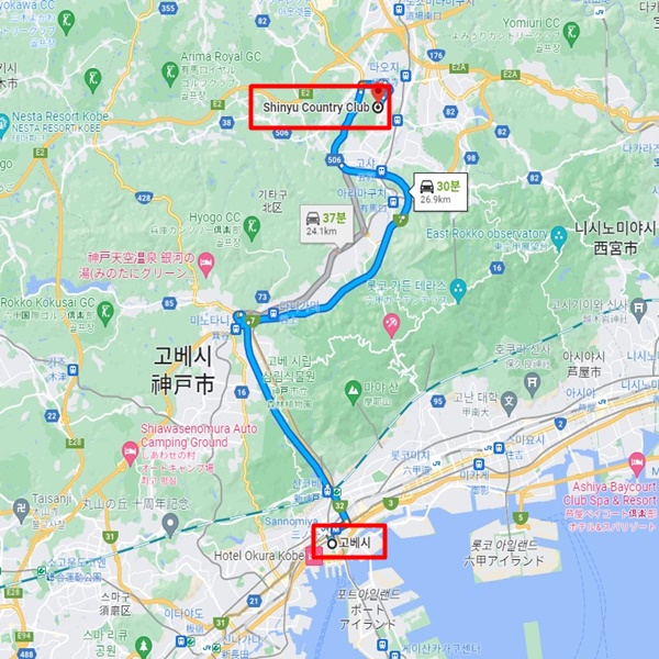 골프장 주변 : 고베 시내에서 차로 약 30분 소요