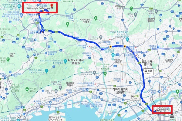 골프장 주변 : 오사카역에서 자동차로 약 50분 소요