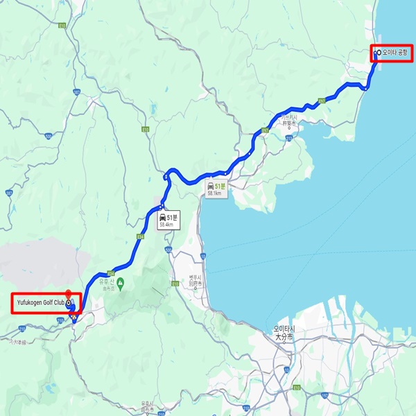 골프장 주변 : 오이타 공항에서 차로 약 50분(유후인역에서 차로 약 10분)