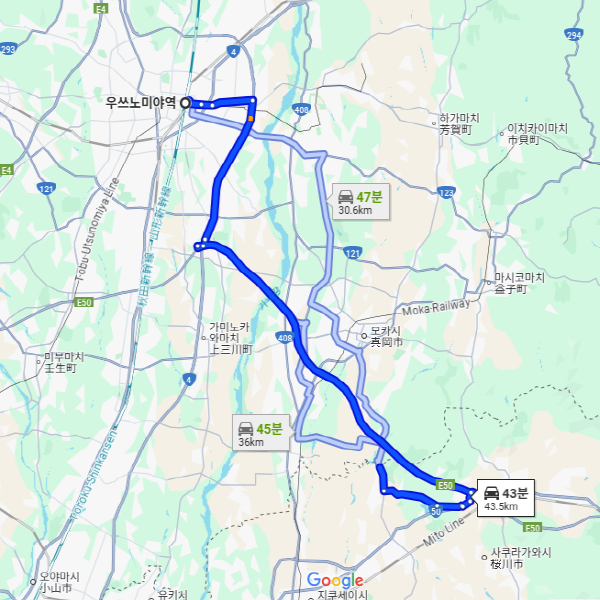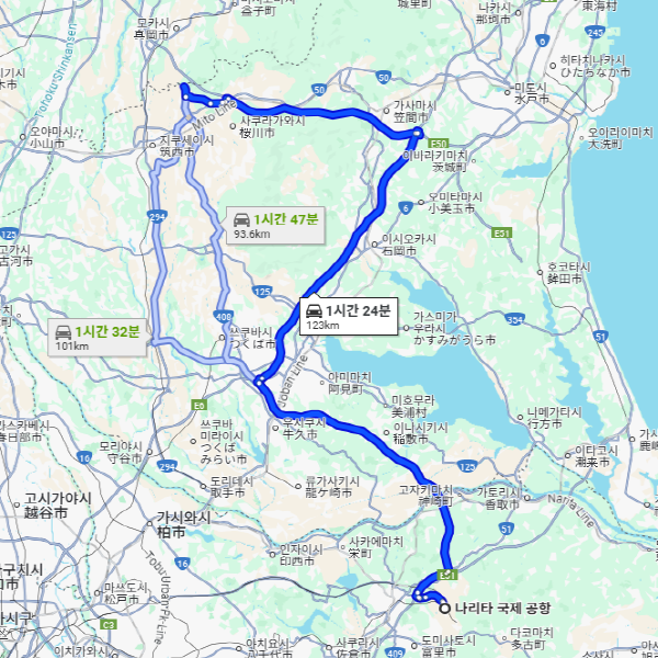 나리타 국제 공항에서 차로 약 1시간 24분 소요
