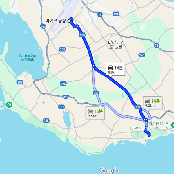 엑세스 공항 기준 : 미야코 공항에서 차로 약 14분 소요
