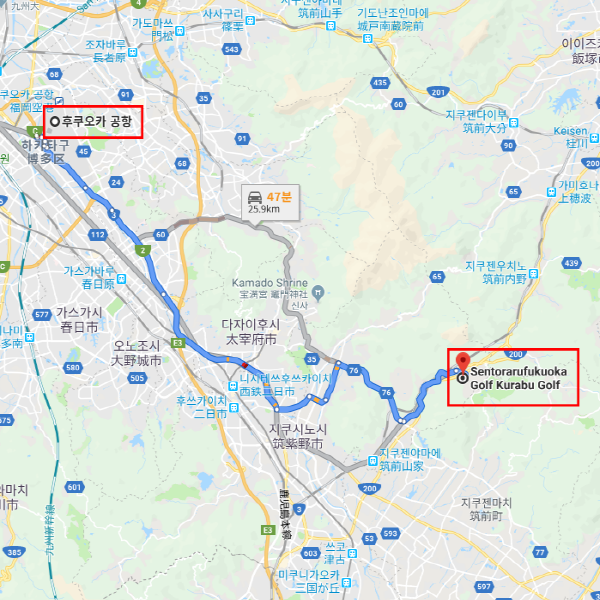공항 기준후쿠오카 공항에서 차로 약 40분 소요 |