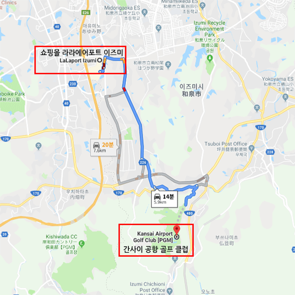 간사이 공항 골프 클럽은 간사이 국제 공항에서 차로 30분 정도 거리에 있어 공항 도착 후 골프장으로 바로 이동하기 매우 편리하다. 또한, 오사카 시내에서도 차로 30분 정도 거리에 있어 관광에도 유리한 골프장이다. 골프장 코스의 경우 아웃코스는 갑자기 핸디캡1인 미들 홀부터 시작하여 인코스의 최종 18홀은 연못을 중간에 띄워 아일랜드 그린으로 마무리 짓는다. 14번은 쇼트홀로 약 10m를 내려치고 연못을 넘기게 되어 있다. 그린 오른편의 80년 이상의 벚나무들도 플레이의 즐거움 중 하나이다. |