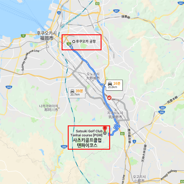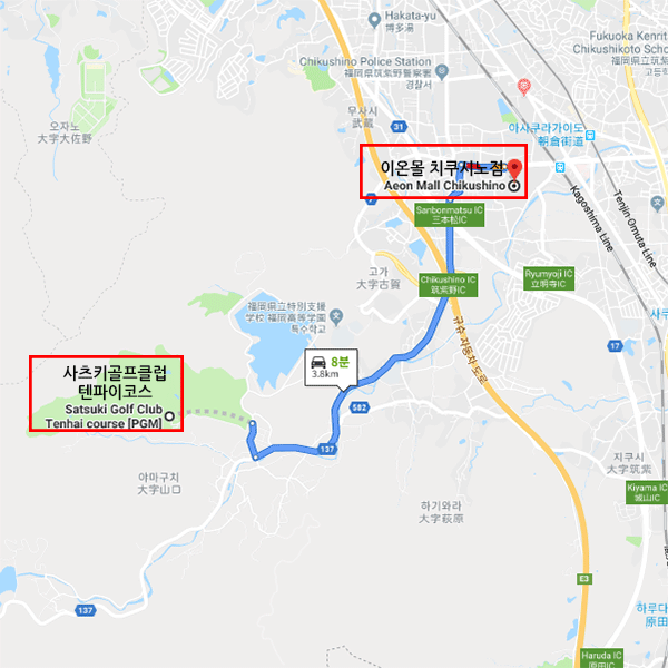 사츠키 골프 클럽 텐파이 코스는 후쿠오카 공항에서 차로 30분 정도 떨어진 거리에 있으며 후쿠오카 근교 관광지로 많이 찾는 다자이후 인근에 있다. 코스는 거리상으로는 긴 편은 아니지만, 산재하여 있는 연못, 벙커, 수목 때문에 어려운 코스이다. 아웃 6번 롱홀이 어려우며 과감한 샷과 정확한 샷이 요구되는 코스이기도 하다. |