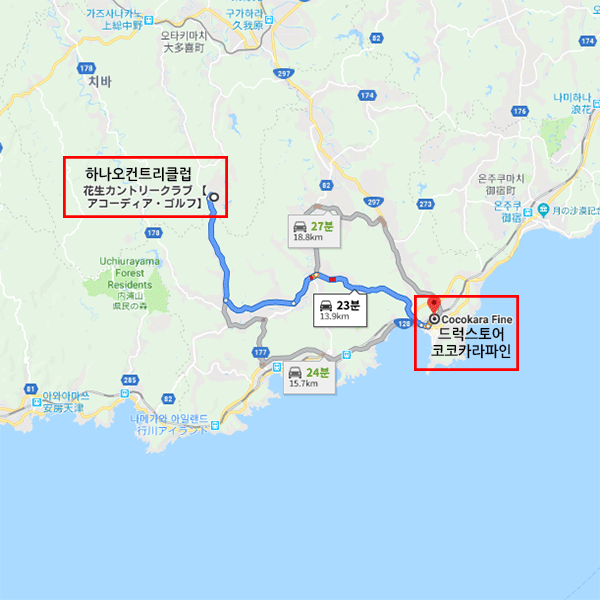 드럭스토어 코코카라 파인에서 차로 약 25분 소요