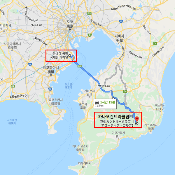 하네다 국제 공항에서 차로 약 1시간 20분 소요