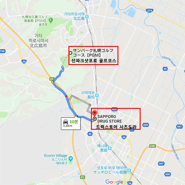 골프장 주변드럭스토어 사츠도라에서 차로 약 10분 소요 |