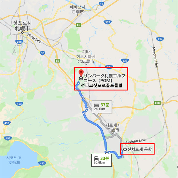 공항 기준신치토세 공항에서 차로 약 33분 소요 |