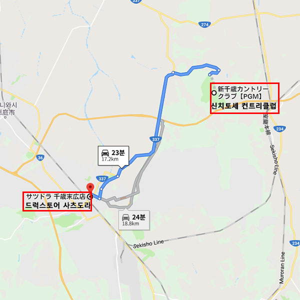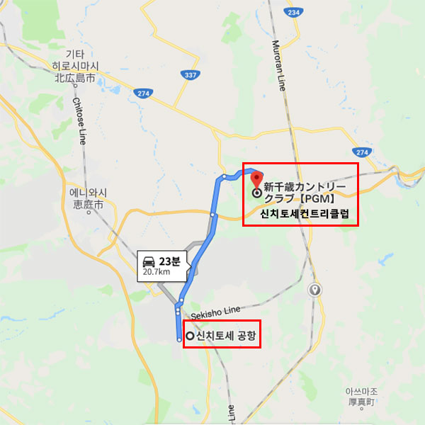 골프장 주변신치토세 컨트리클럽에서 차로 약 23분 소요 |
