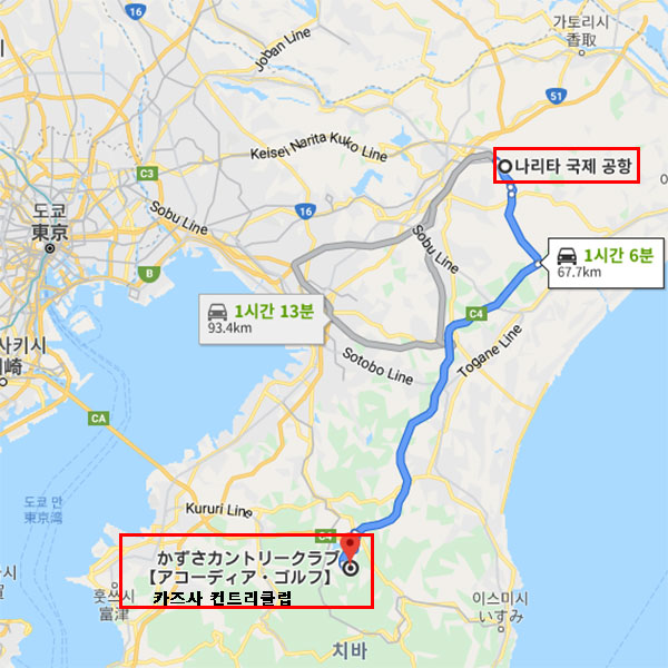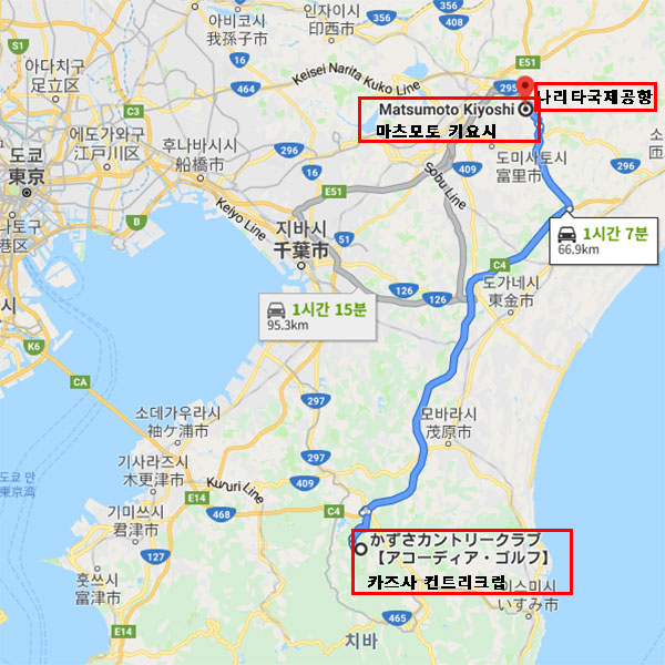 공항 기준나리타 국제공항에서 차로 약 1시간 6분 소요 |