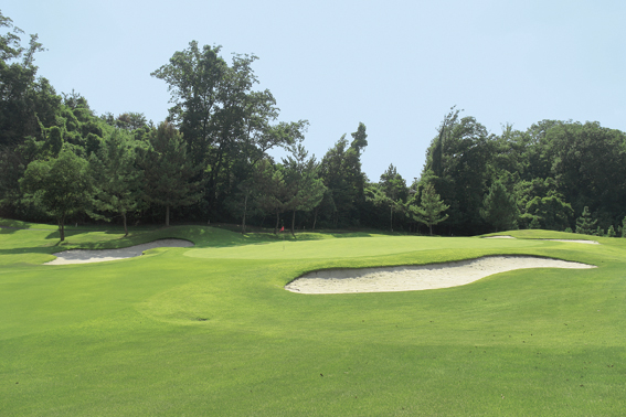 모든 홀이 플랫하여 기복이 심하지 않은 지형에 위치한 고베파인우즈 골프클럽은 대부분의 홀이 시야를 가리지 않아 공의 낙하지점이 보일 정도이다. 하지만 연못이 곳곳에 배치되어있어 전략성 또한 갖추고 있는 레이아웃으로 구성되었다. 그 중 17번 홀은 그린 왼편에 연못이 있어 플레이어에게 부담감을 주는 요소로 작용한다. 그린에는 큰 기복은 없으나 기울기가 미묘해서 퍼팅 시 안심해서는 안된다. 도시에서의 접근성이 뛰어나 더욱 편하게 플레이를 즐길 수 있다. |
