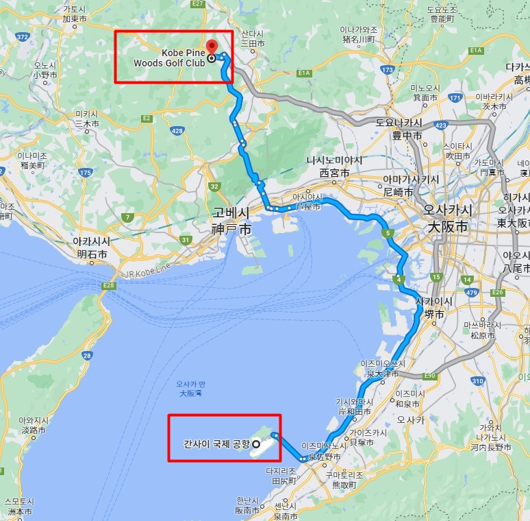 공항 기준간사이 국제 공항에서 차로 약 1시간 22분 |