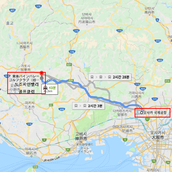 엑세스 공항 기준 : 간사이 공항에서 차로 약 43분 소요