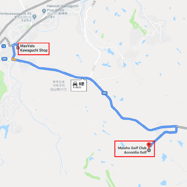 골프장 주변수퍼마켓 맥스밸류 카와구치점까지 차로 약 8분 소요 |